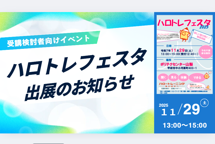 【お知らせ】ポリテクセンター山梨主催「ハロトレフェスタ2025」に参加します!